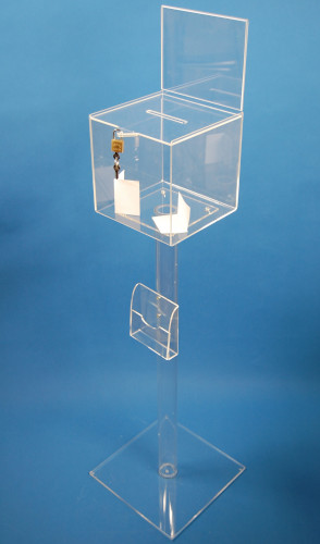 Prix 113,00 € HTUrne plexi acrylique transparente tube rond sur pied + cadenas
