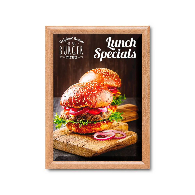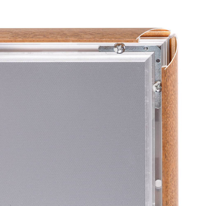 Cadre d'affichage pour toile et affiche en alu et décoré en simili bois pour allier la ténacité de l'alu et quand même profiter de la beauté du bois. Ce cadre porte affiche est composé de profilés en aluminium de 25mm de large.