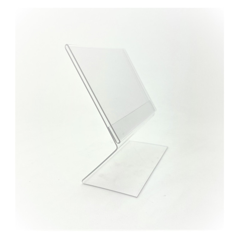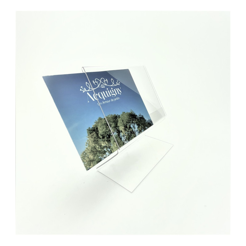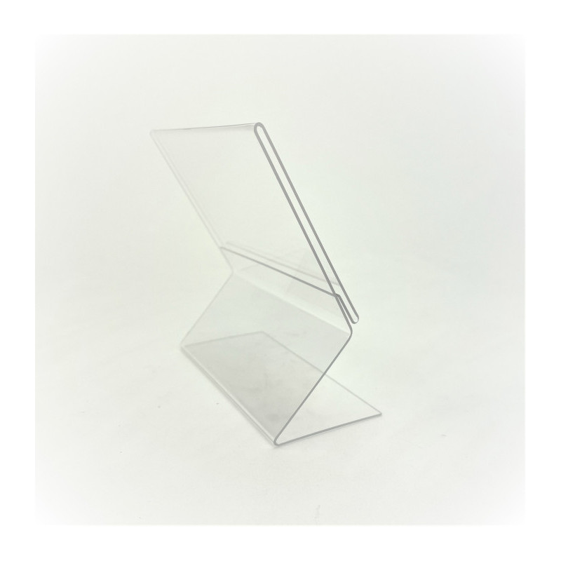 Support d'étiquette sur pied en Z fabriqué en PET dans notre atelier dans les Hauts de France. Nous pouvons créer ce chevalet sur mesure selon vos besoins.