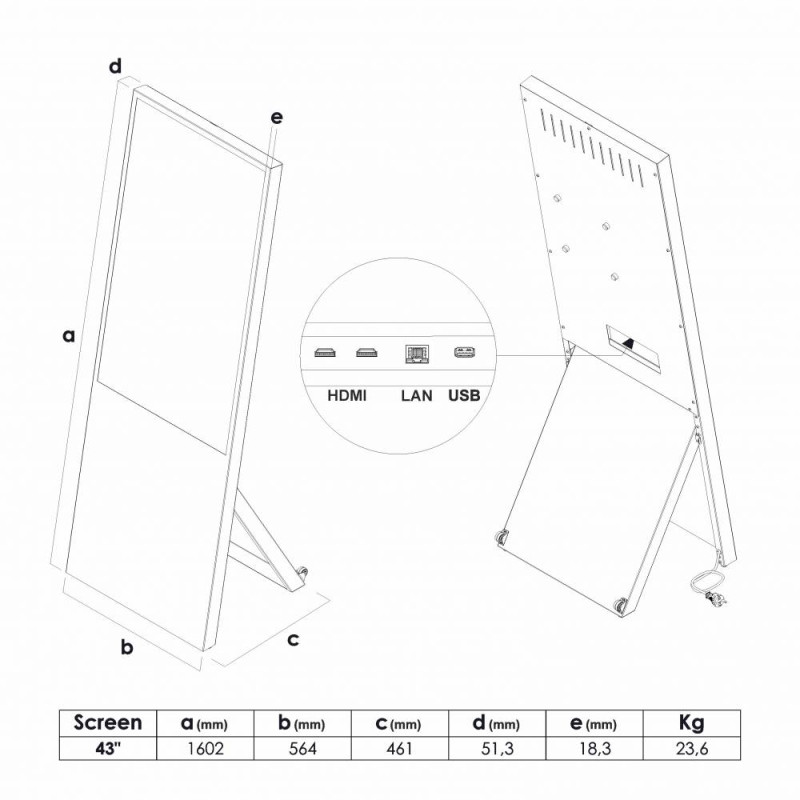 Dimensions du totem monté : Larg. 564 x prof. 461 x ht. 1587mm.