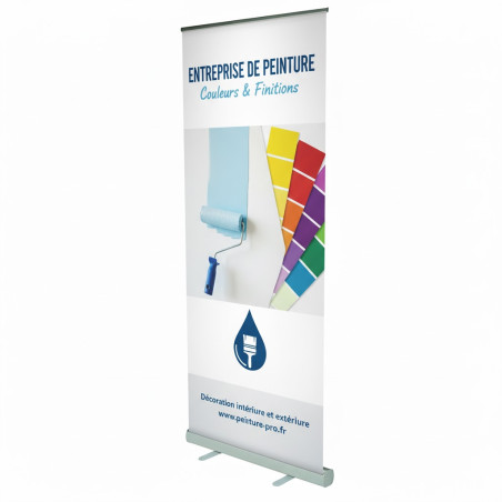 Roll up publicitaire à poser pratique et idéal pour une utilisation à court terme, conçu pour les évènements ou affichage de courte durée. Équipé de 2 pieds pivotants pour une meilleure stabilité, d'un carter en aluminium avec embouts plastique et d'un mat en 3 parties.