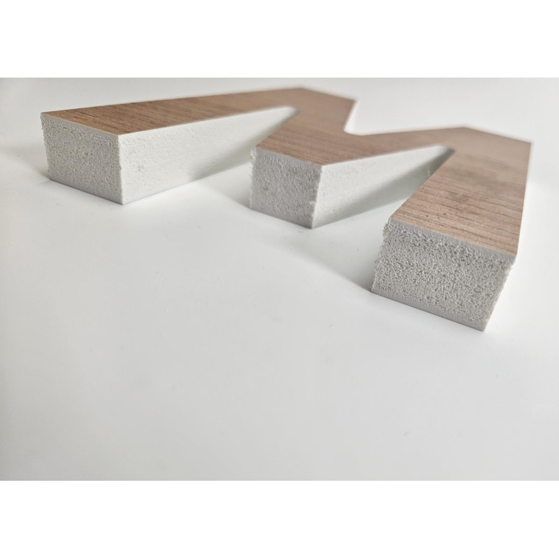 De même sur demande nous pouvons aussi utiliser du PVC noir de 19 mm d’épaisseur pour effectuer les découpe de vos lettres, cela permet ainsi selon le rendu souhaité d'avoir les tranches des lettres en noir.