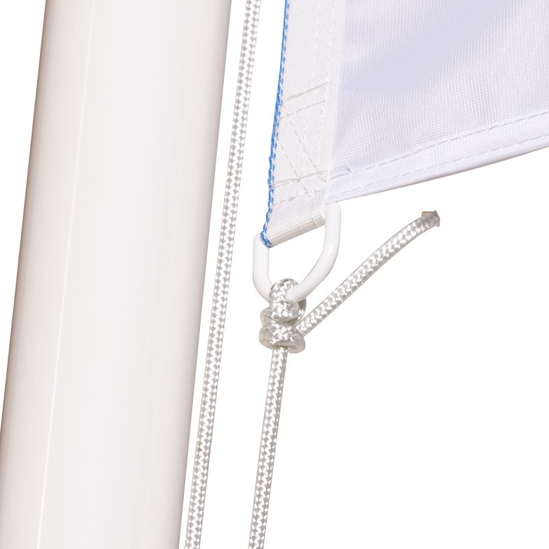 Livré complet avec accessoires et fixations, soit : drisses, taquets, pommeau doré et platine basculante.