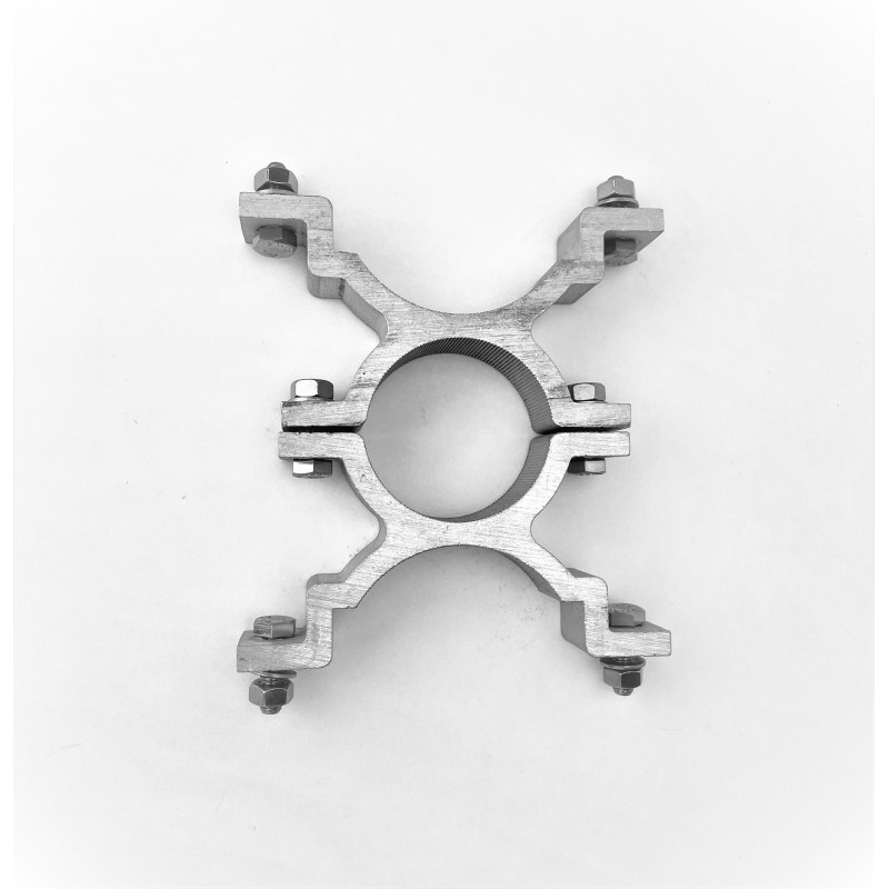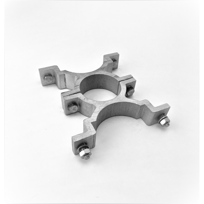 Bride alu pour mât ø60mm. Sert à la jonction de 2 panneaux dos à dos.