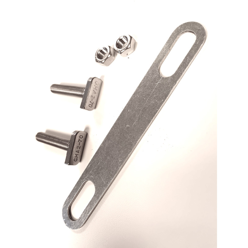 Patte de fixation pour accroche de panneau sur grillage. Vendu avec visserie M8.