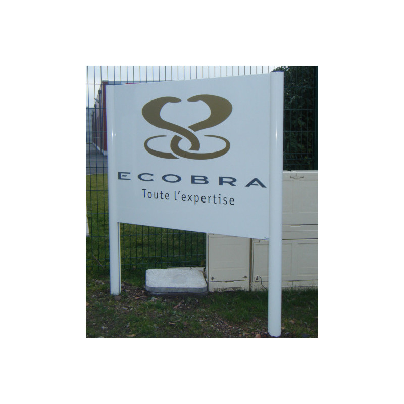 Réalisation d'un panneau enseigne sur terre plein avec utilisation d'un bi-mat