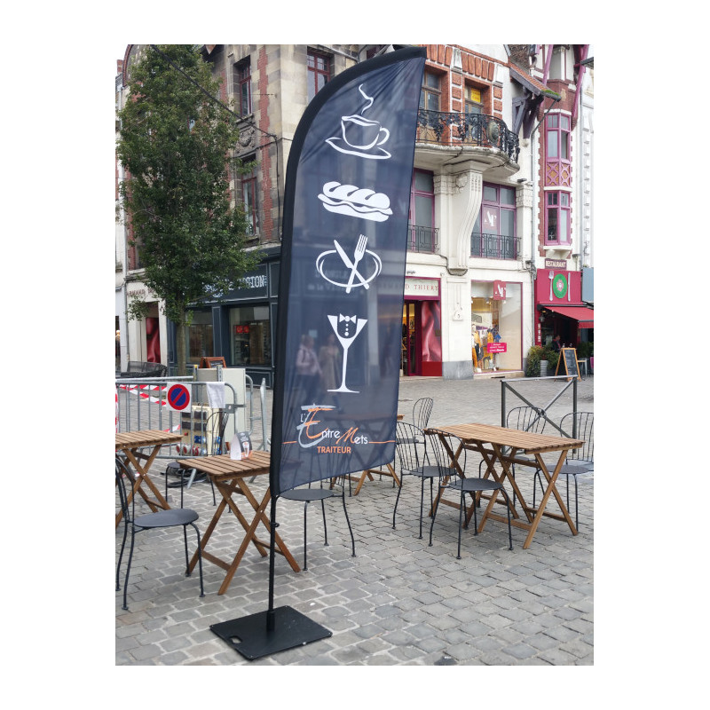 voile publicitaire imprimée avec platine de sol pour installation facile en extérieure