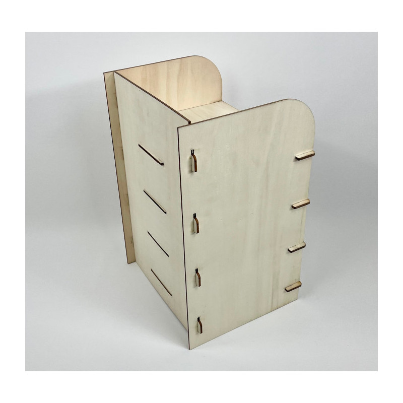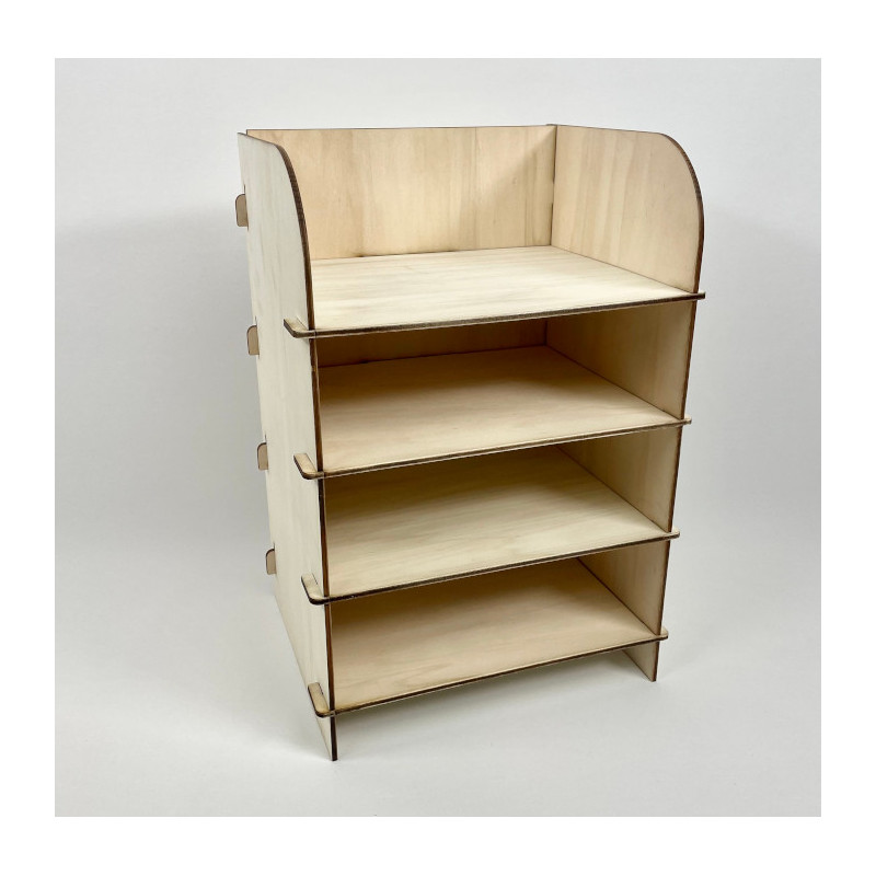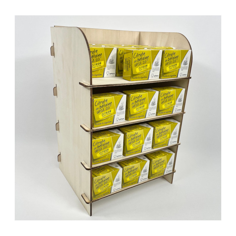 Réalisation d'un présentoir quatre niveaux en bois à poser livré à plat montage par emboitement