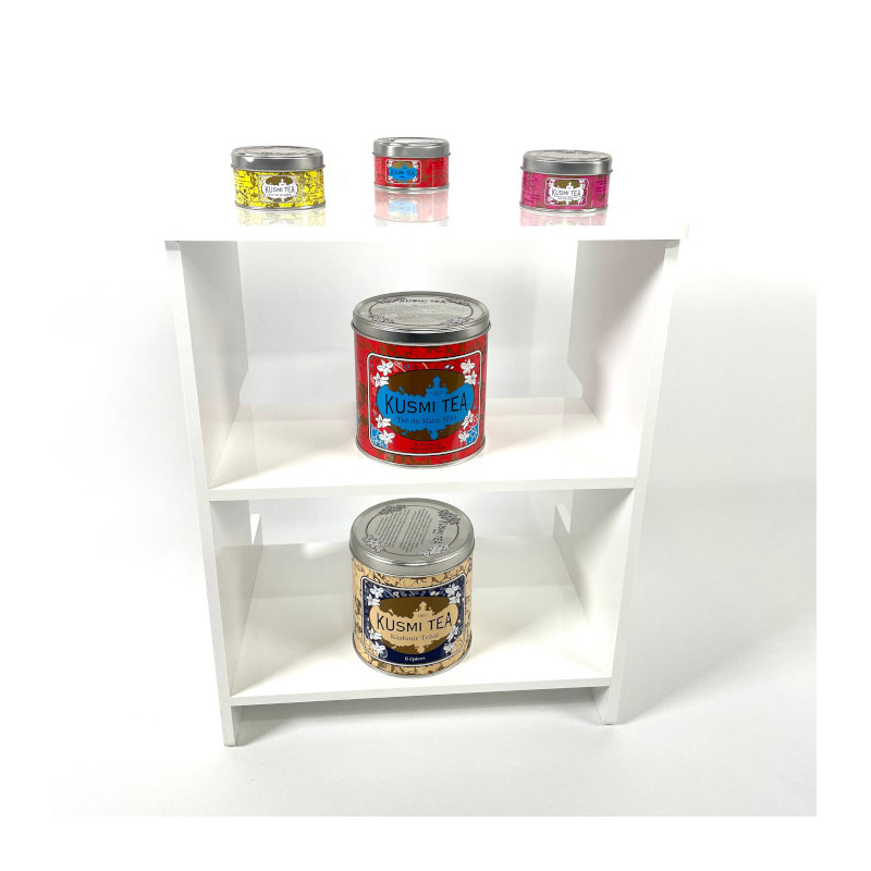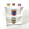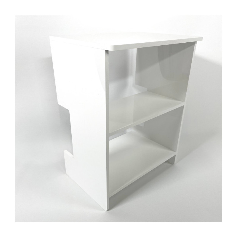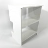 Réalisation d'un petit meuble de présentation trois niveaux en plexiglas blanc avec découpe spécifique pour s'adapter à l'environnement d'installation