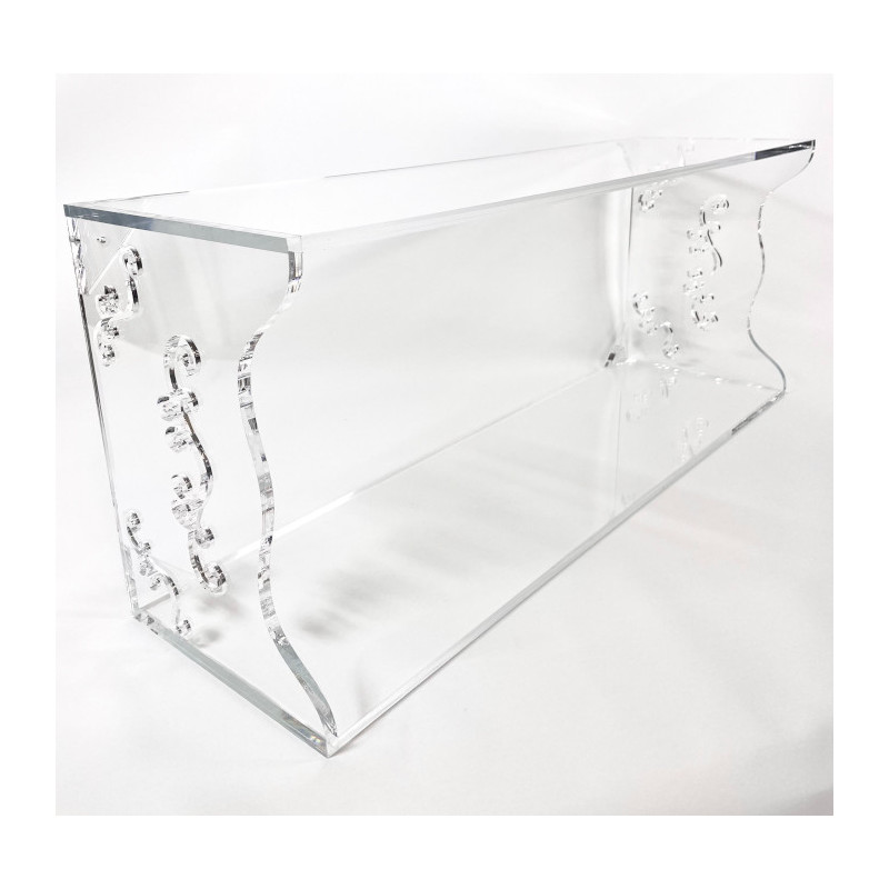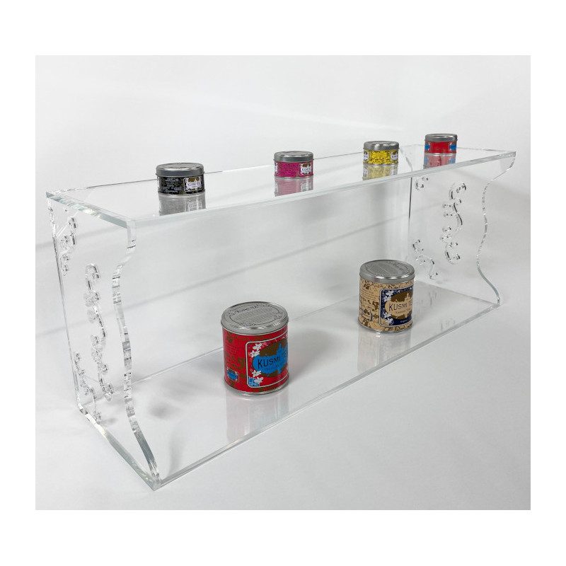 Réalisation d'une étagère murale design en plexiglas avec découpe au laser d'arabesques sur les cotés.