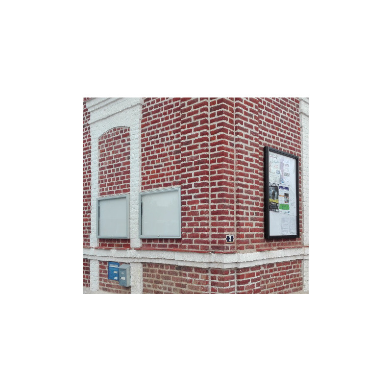 Réalisation de vitrines d'information du public su façade de bâtiment.