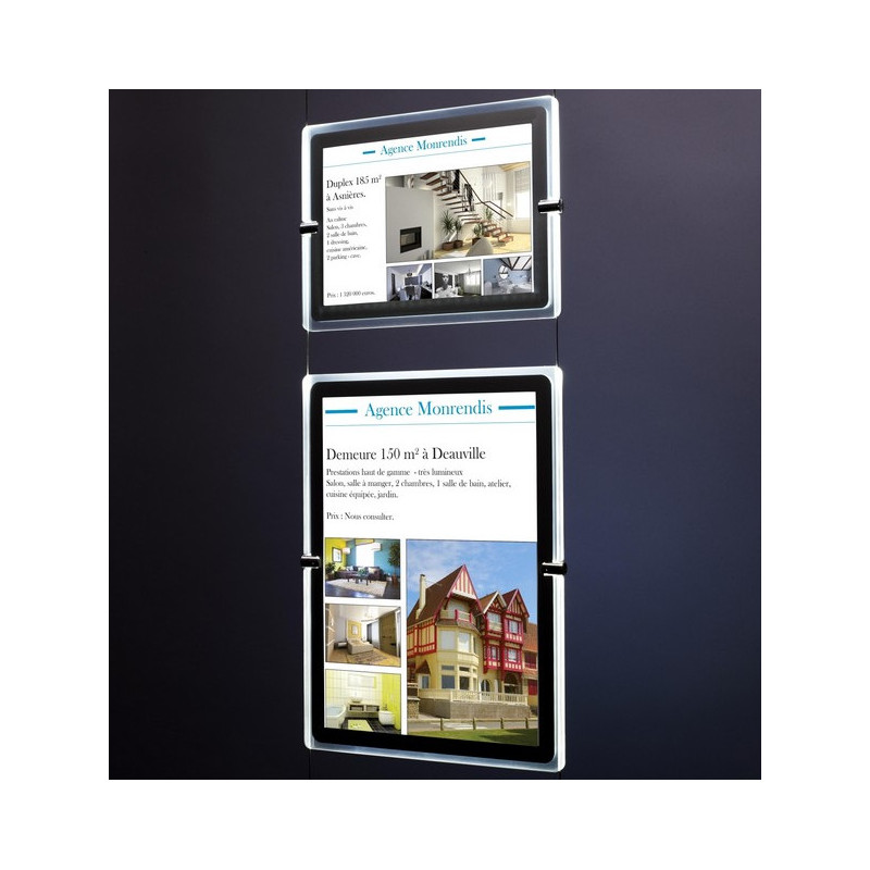 Ces portes visuels sur câble sont idéals pour vitrines et notamment en agences immobilières