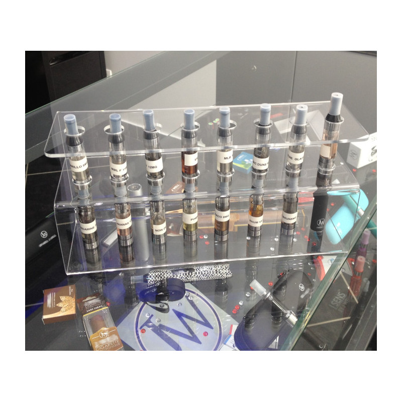 Réalisation d'un support de cigarette électronique en plexiglas à poser sur vos comptoirs ou rayons il permet la présentations de huit modèles verticalement