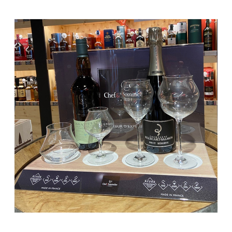 Réalisation d'un présentoir surélevé pour verres sommelier avec impression et PLV en fond