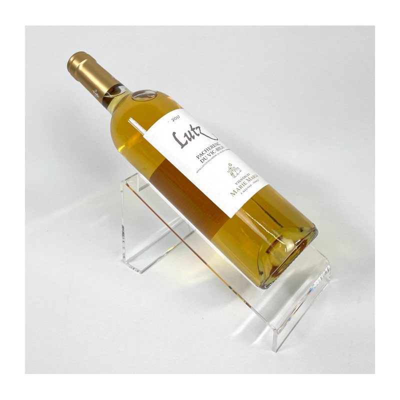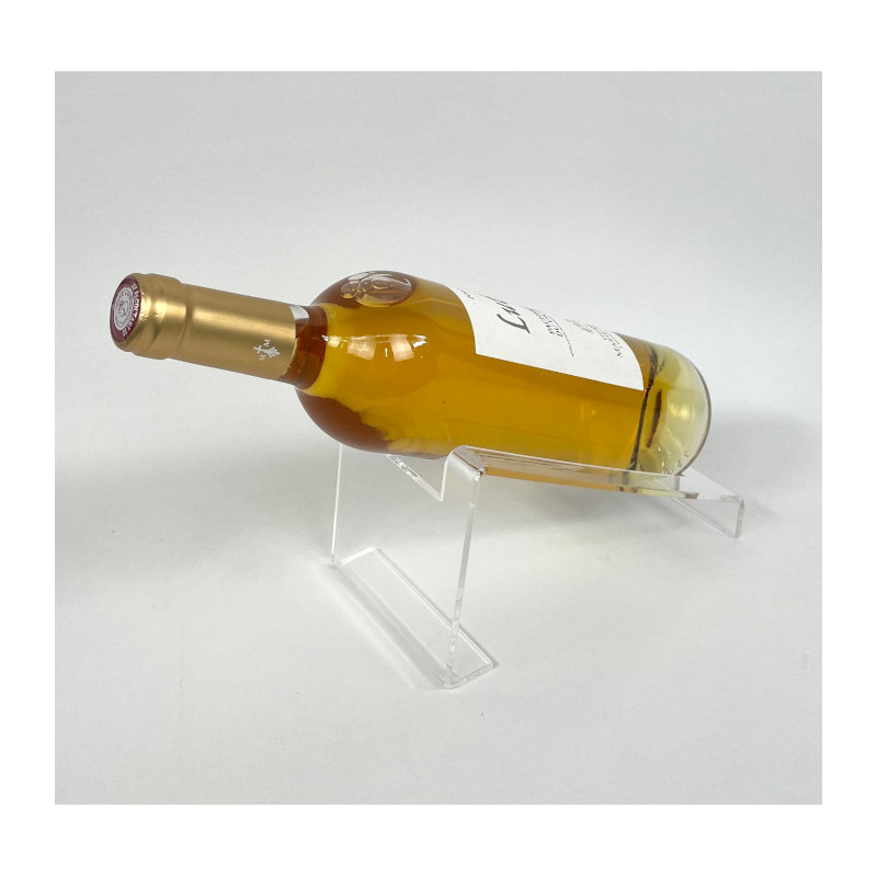 Réalisation d'un présentoir porte bouteille incliné en plexiglas pour une bouteille se pose facilement sur vos comptoirs et rayonnages