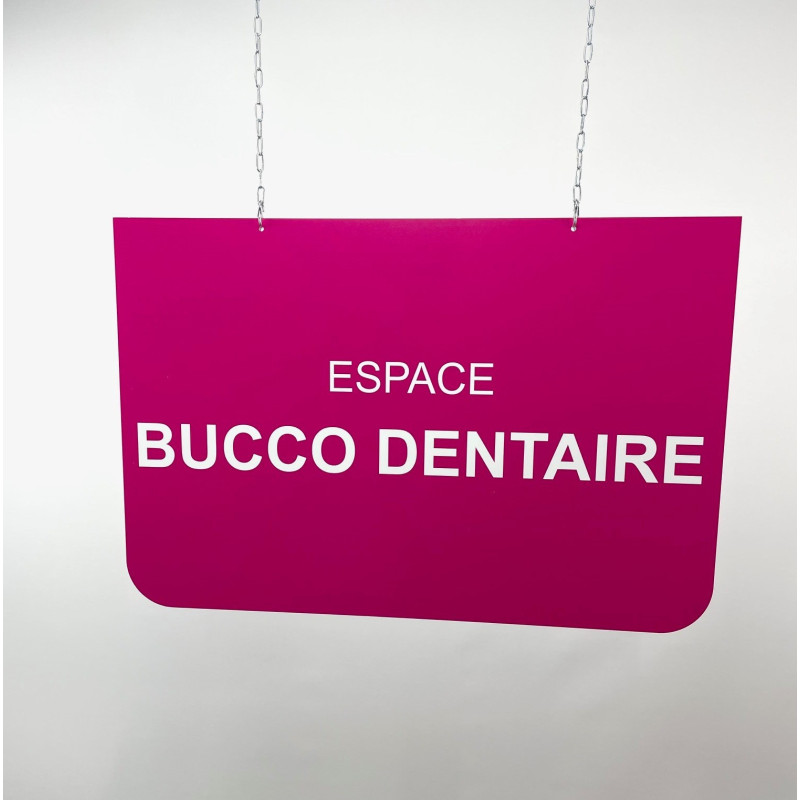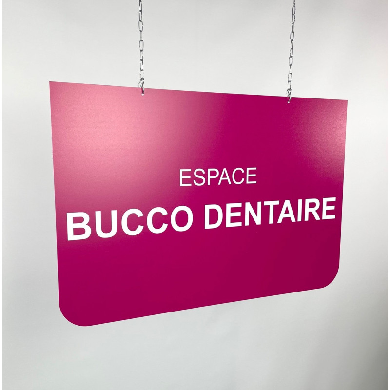 Panneau imprimé suspendu dans nos ateliers il sera imprimé selon vos fichiers d'impression fournis.