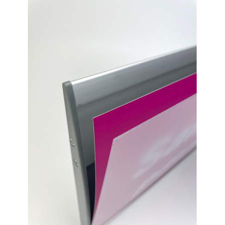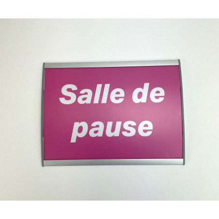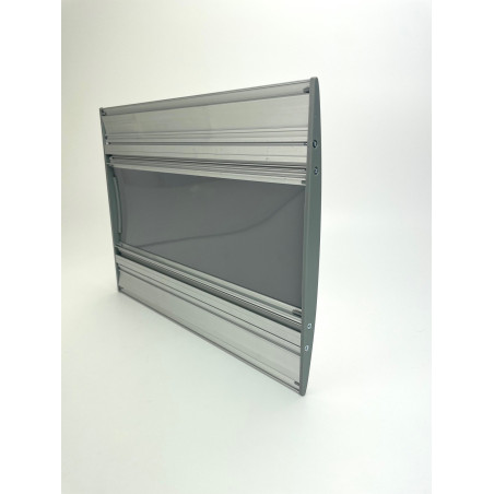 Cette plaque de porte est composée d'un cadre en aluminium incurvé, de 2 embouts plastiques et d'un film de protection en PVC.