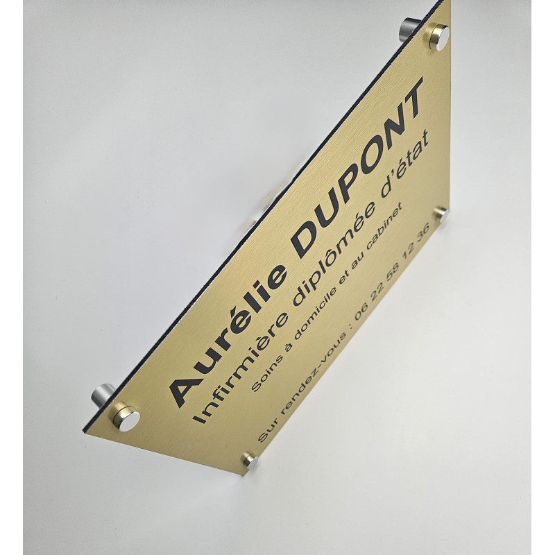 Chez Sigma nous imprimons vos plaques professionnelles sur mesure. Solution idéale pour les professions libérales (médecins, avocats, notaires...), mais aussi pouvant être utilisée comme plaque d'accueil d'entreprise ou pour votre signalétique intérieure. Sa finition alu or brossé apporte une touche de modernité tout en valorisant votre image.