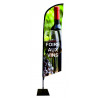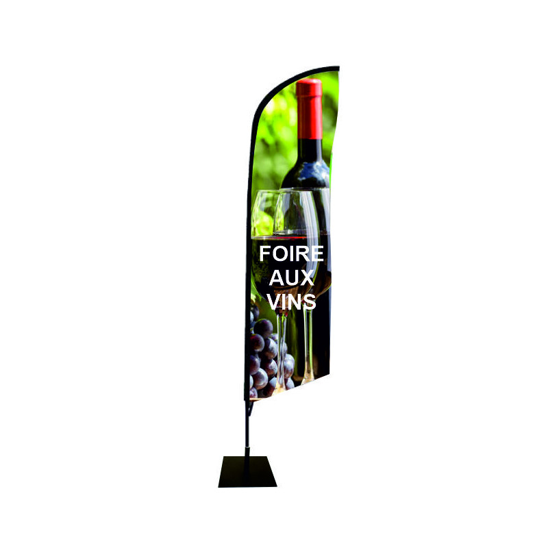 Le kit comprend, la voile "Foire aux Vins" 170 x 50cm, le mat d'une hauteur totale de 2m30 et d'une embase 55x55cm d'une poids de 7kgs.