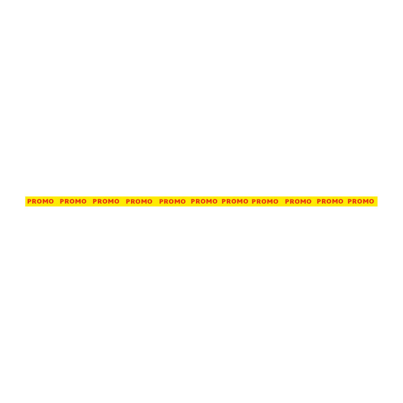 Référence : VAC0831-PROMO-ROUGE ( Ht 1.9cm x Lg 100cm | Fond jaune / Texte rouge )