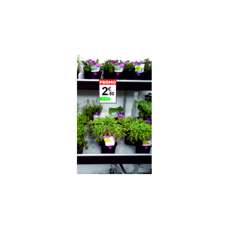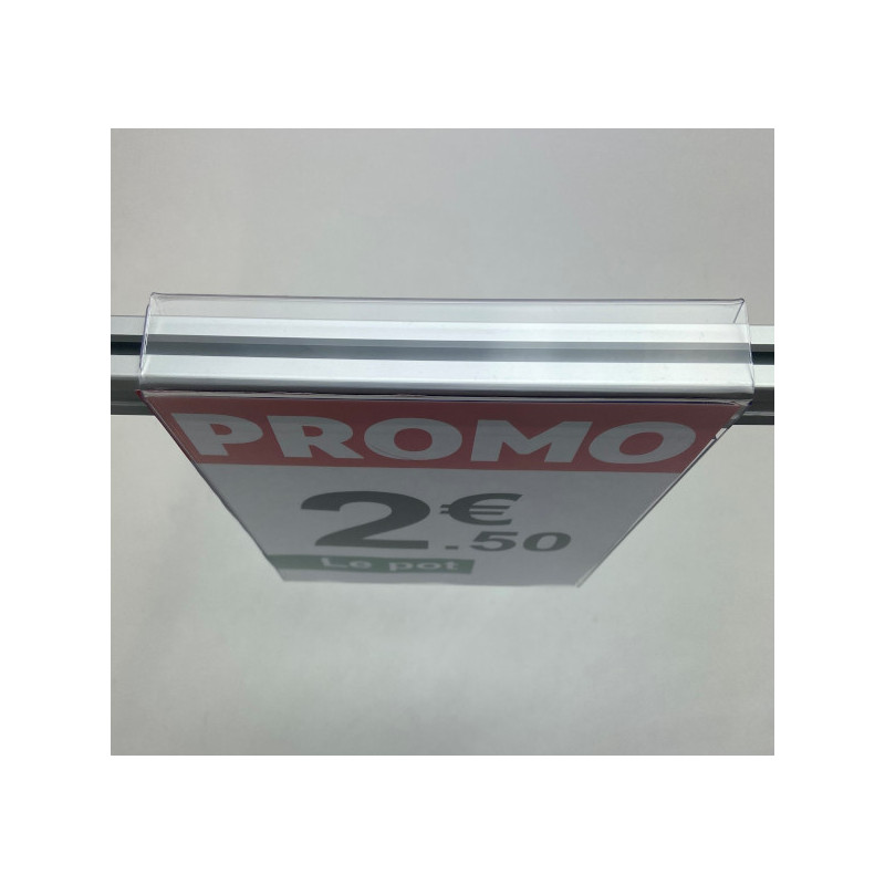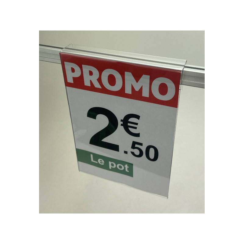 Support d'affiche suspendu pour tablard de magasin de horticole.
