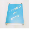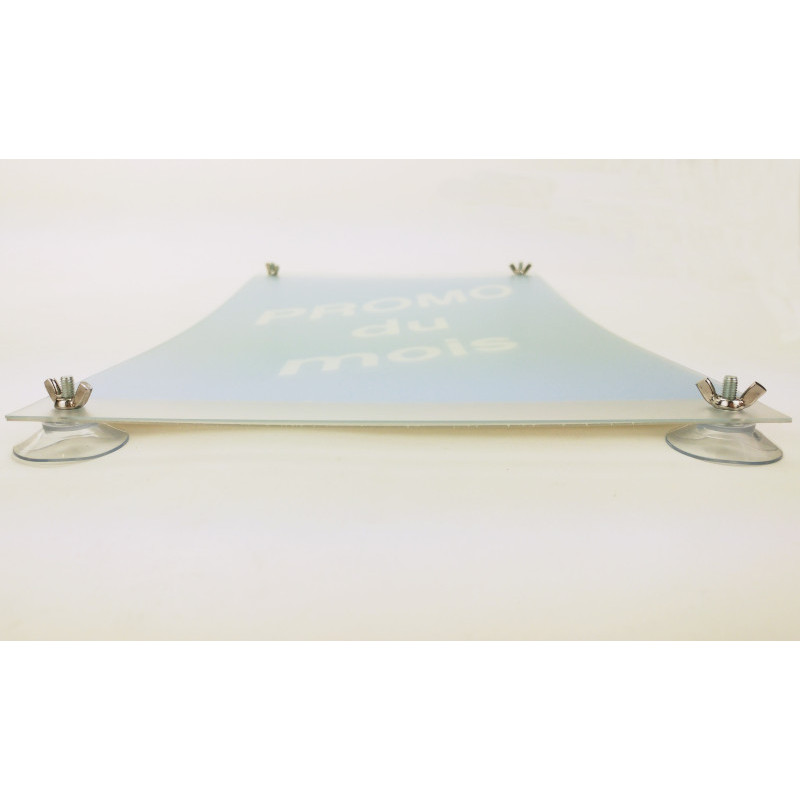 Ce support d'affiche transparent avec ventouses de fixation permet d’éviter toute dégradation du support sur lequel il est accroché, en effet les ventouses de fixation de ce panneau porte visuel ne laissent pas de trace de colle et évitent de faire des trous de fixation.
