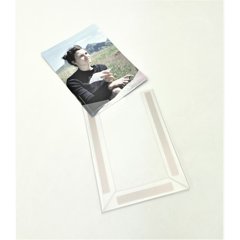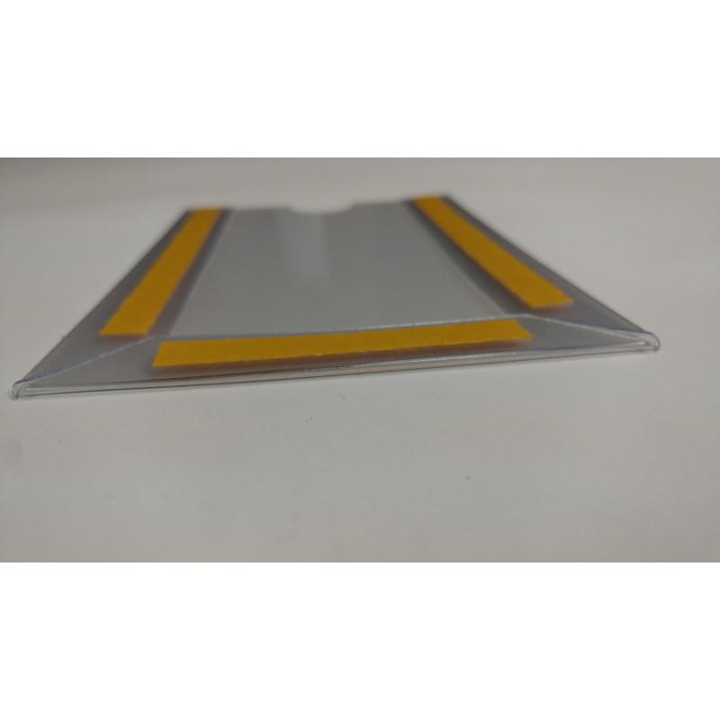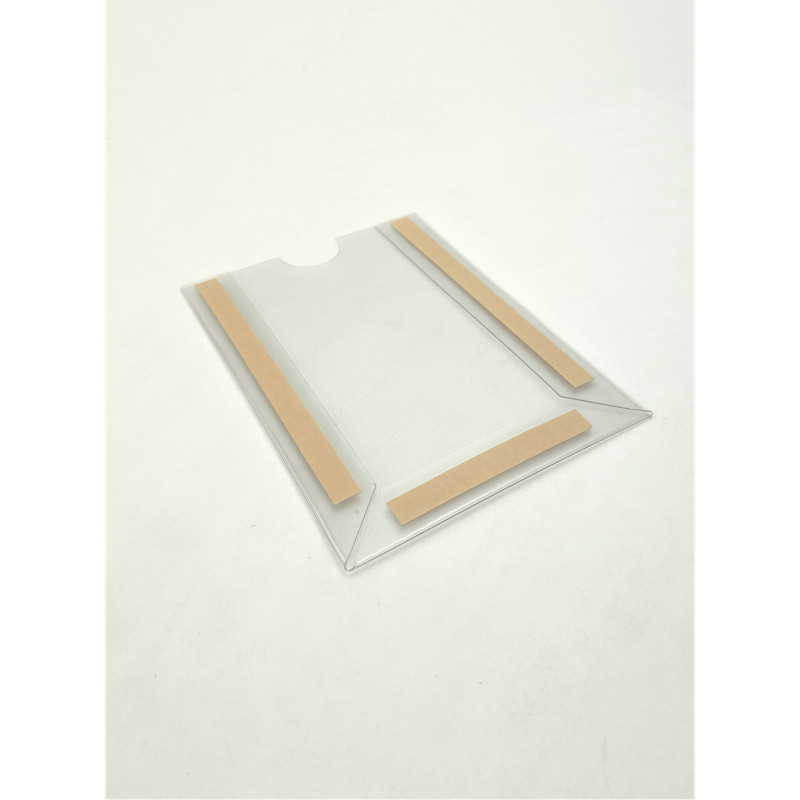 Porte étiquette adhésif pas cher grâce à sa réalisation en PVC transparent 0.5 mm d'épaisseur