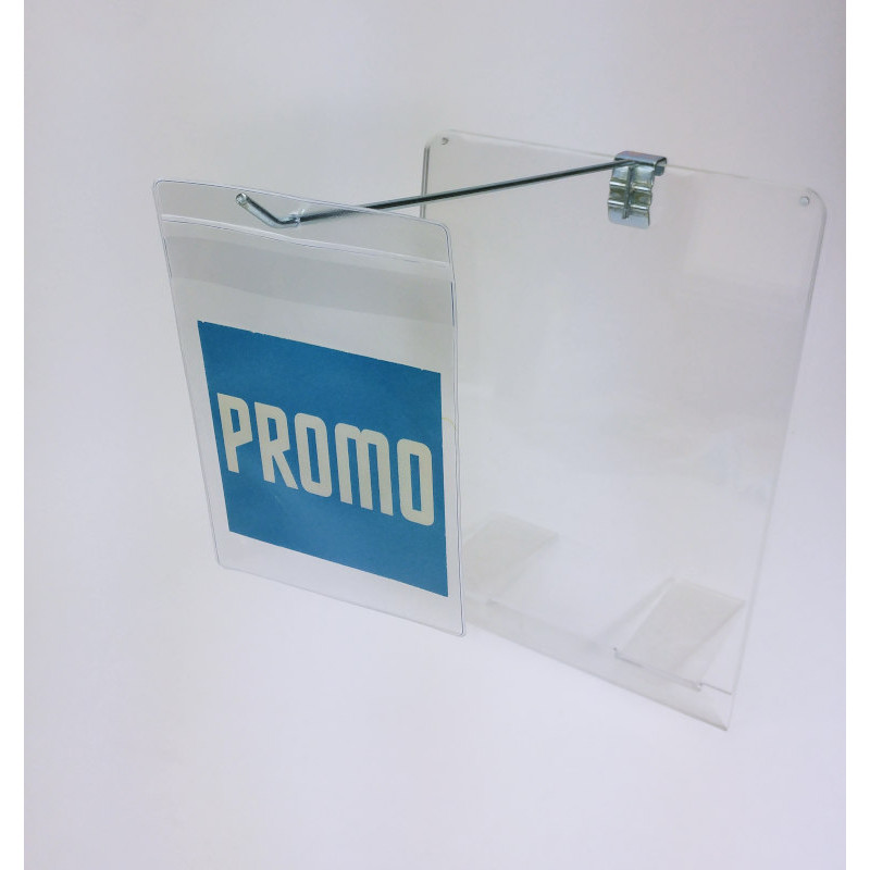 Ce porte étiquette à suspendre permet d'afficher vos PLV dans les rayons de magasin.