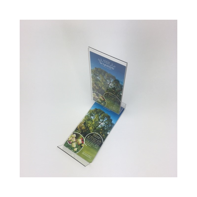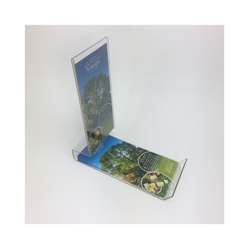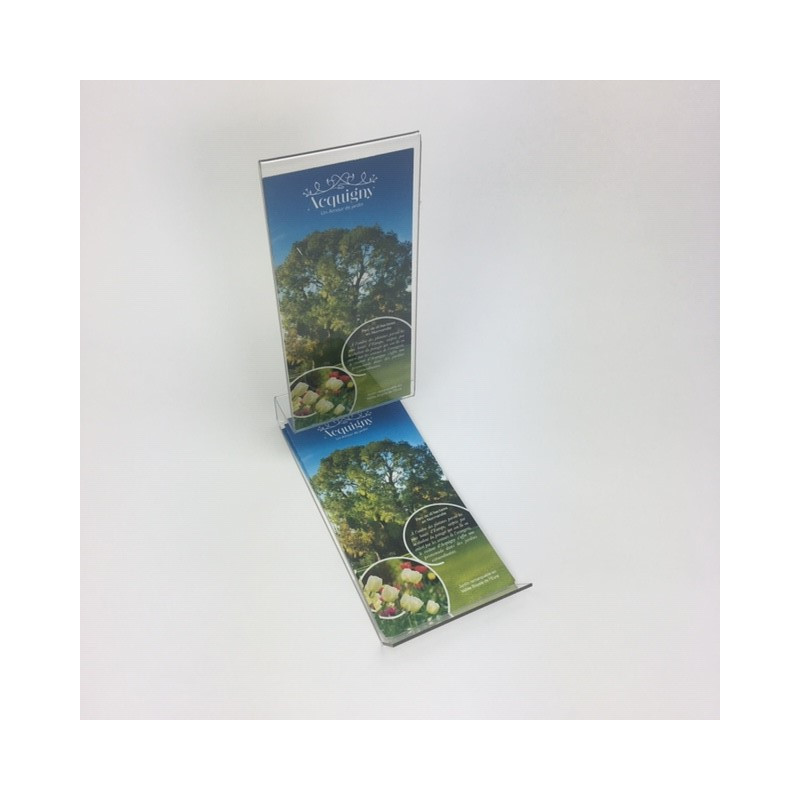 Porte-brochures mixte info+brochure à poser en PET transparent