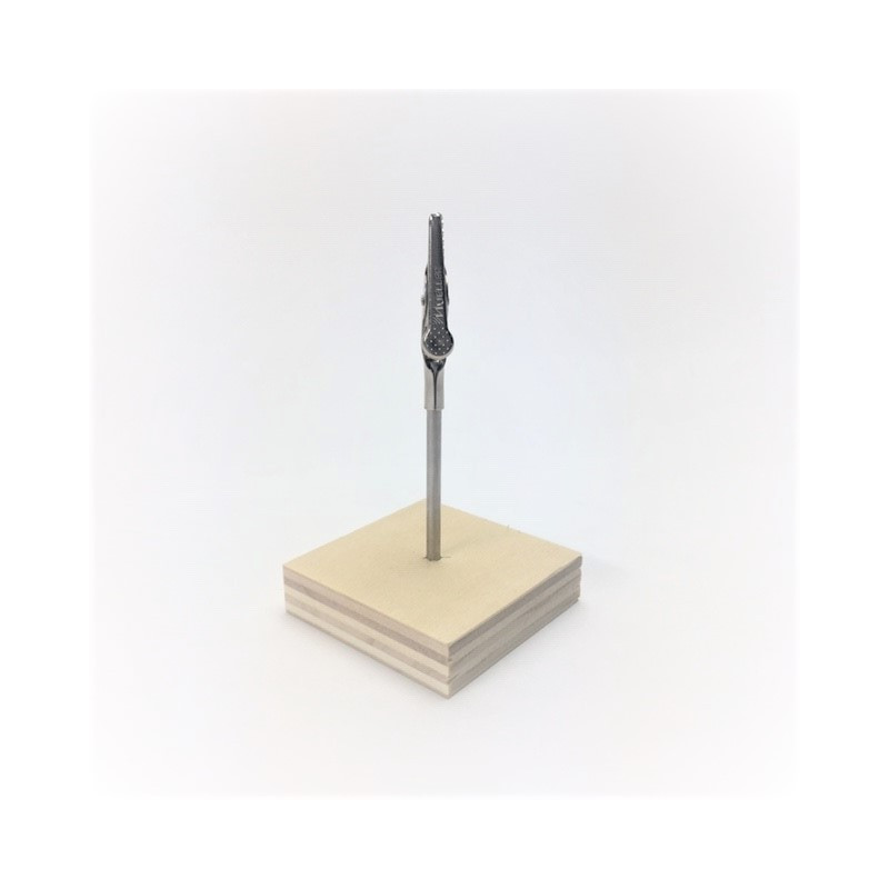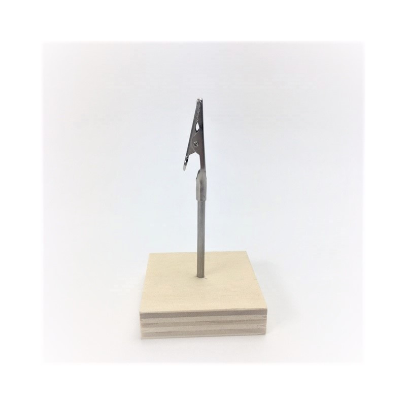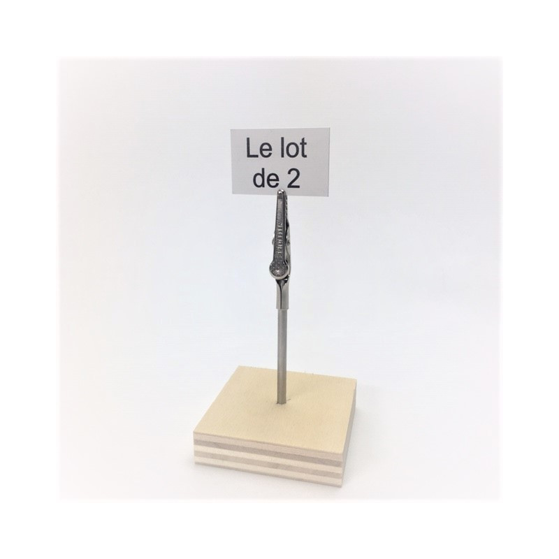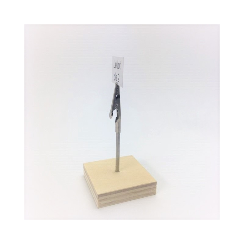 Ce porte étiquette est réalisé en bois cp aspect peuplier. Il est muni d'une tige inox surmontée d'une pince crocodile permettant le bon maintien d'une étiquette ou petite affiche.
