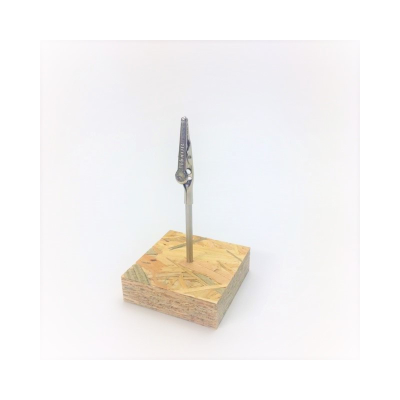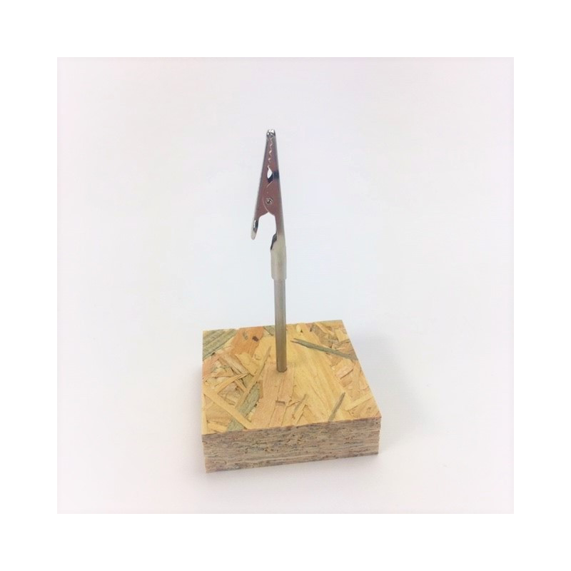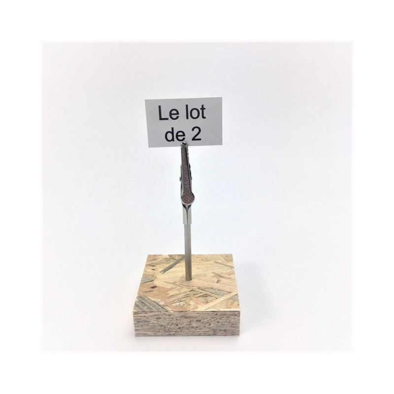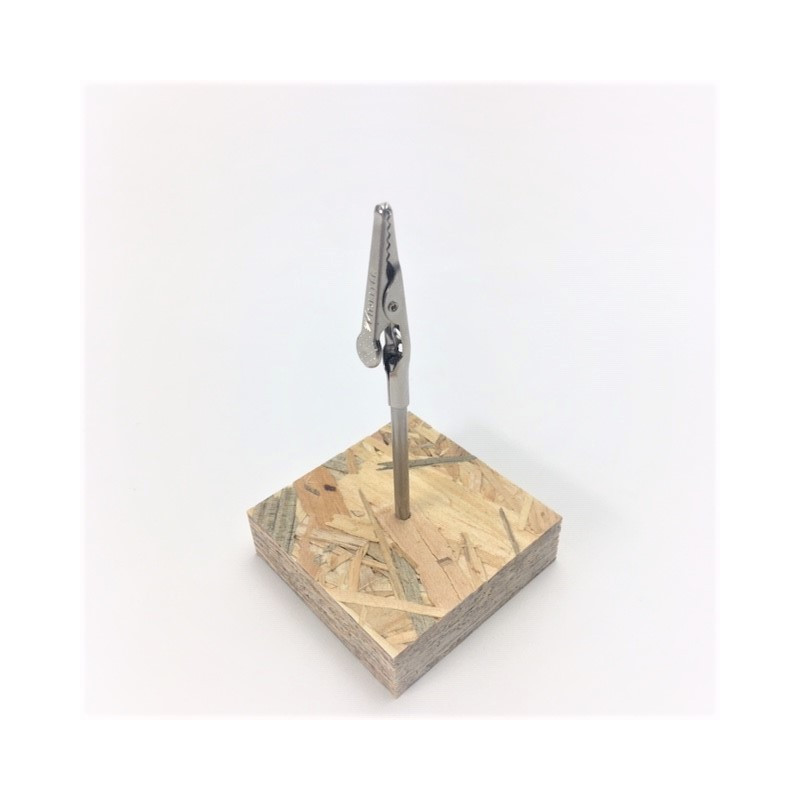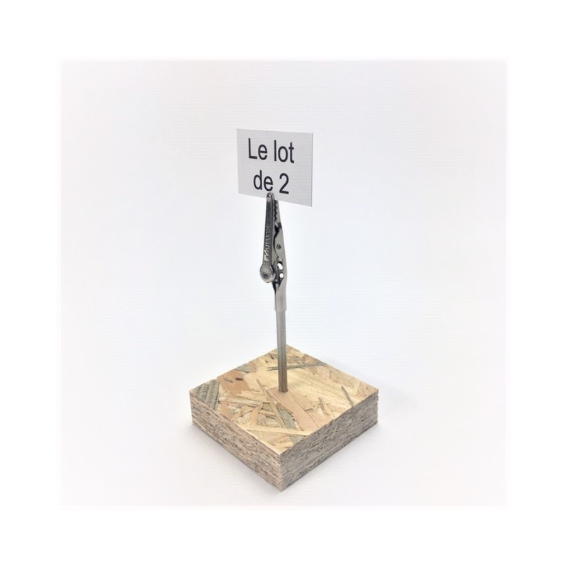 Ce support étiquette est réalisé en bois OSB d'une hauteur de 18mm, muni d'une tige inox de 15mm de haut avec pince crocodile pour un bon maintien du visuel ou de l'étiquette.