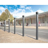 Tube acier Ø76mm. Équipés de pommeaux décoratifs soudés en fonte d'acier. Utilisés seuls ou intégrés dans nos lignes de mobilier urbain. Finition peint sur zinc selon nos RAL, fixation par scellement.