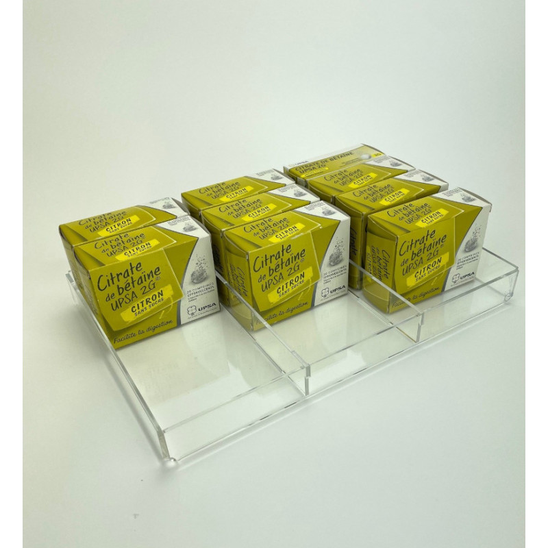 Ce plateau de présentation peut se poser sur comptoir, banque d'accueil, étagères, meubles de présentation, auprès de vos caisses etc..