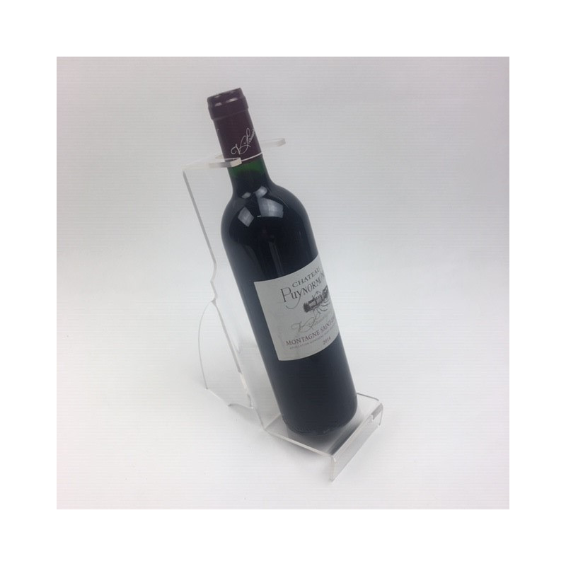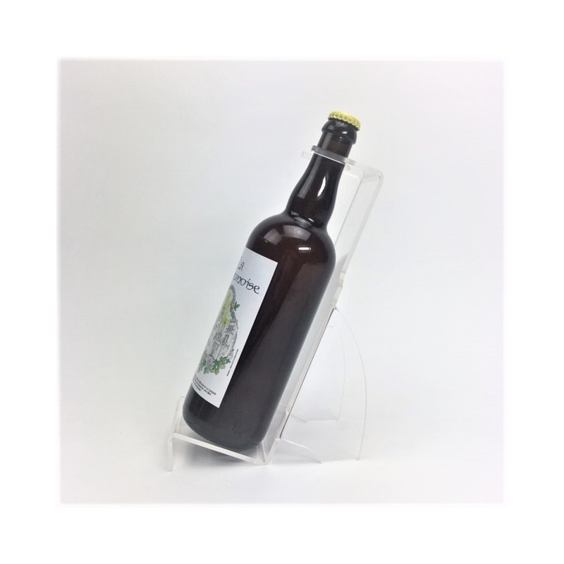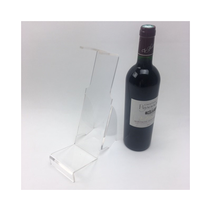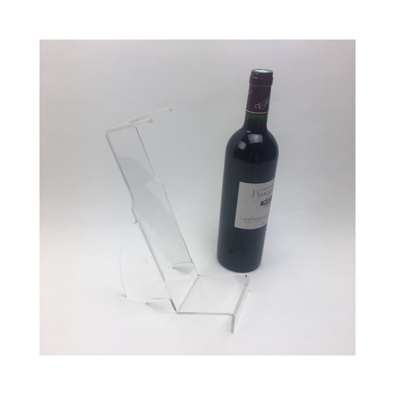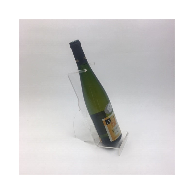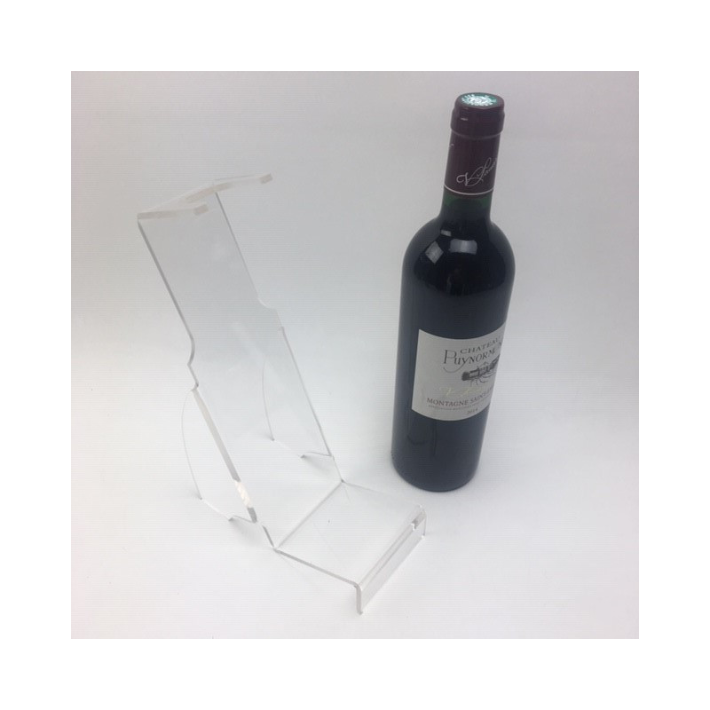 Ce support plexi de bouteille est universel et permet de présenter de multiples formes de bouteille: Bière, vin, champagne, etc..