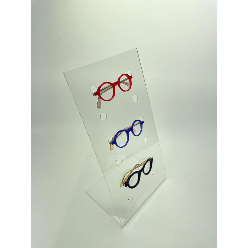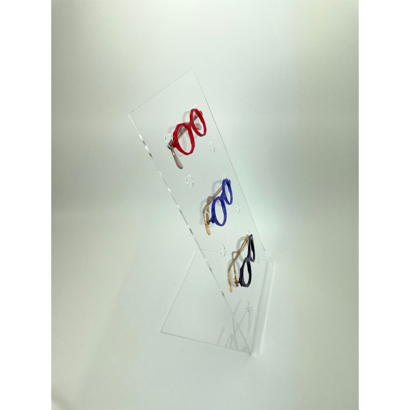 Présentez vos 5 ou 6 paires de lunettes phares sur un comptoir grâce à ce chevalet plexi transparent.