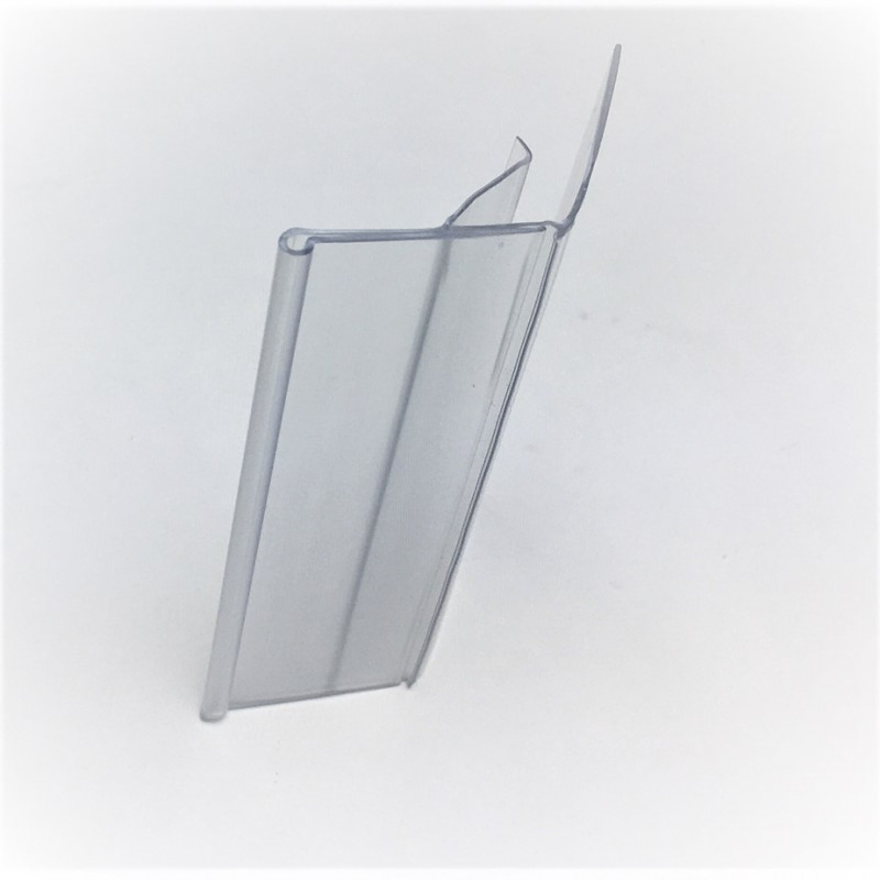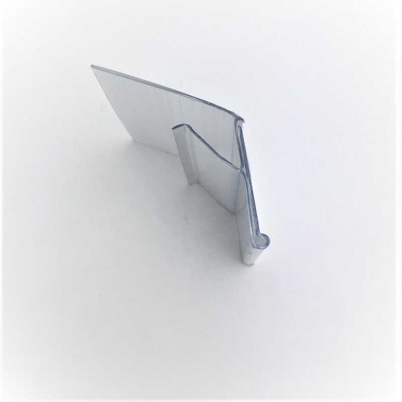Profile réglette porte étiquette idéal pour tablette verre, se fixe facilement sur vos étagères en verre grâce à sa pince transparente qui se glisse sur l'épaisseur de votre tablette.