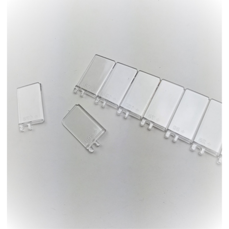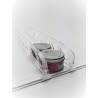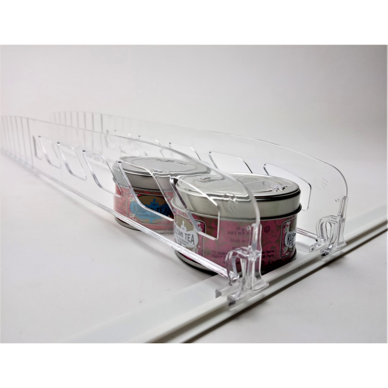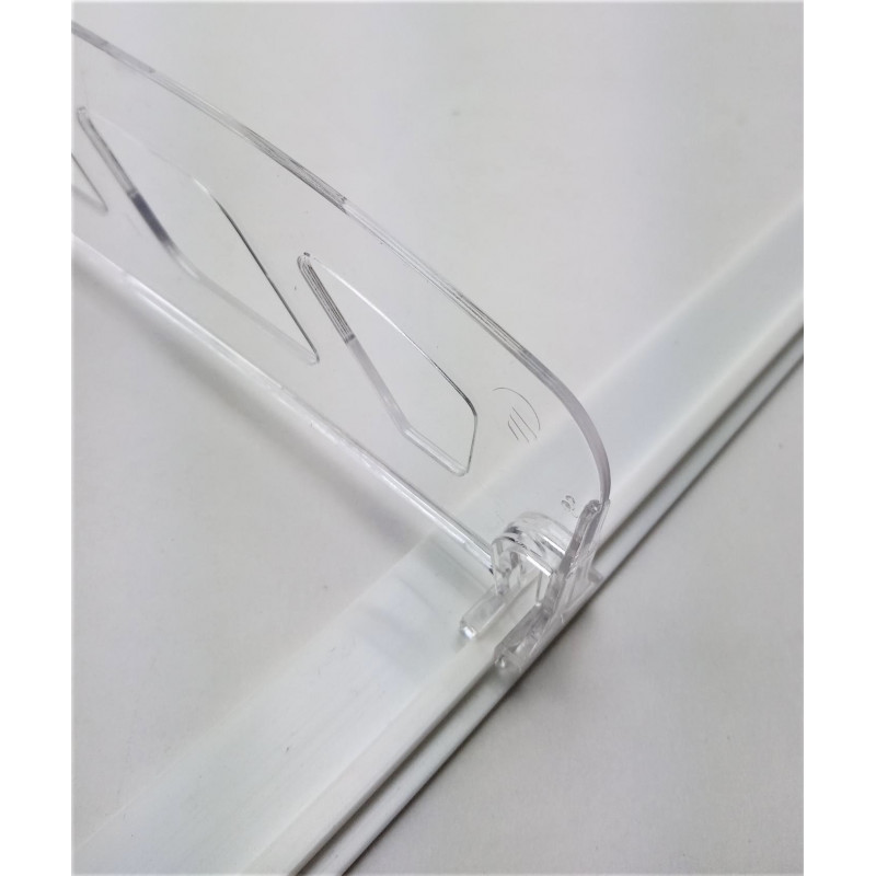 Séparateur vertical de gamme de produit à fixer sur tablette de linéaire directement avec des rails complémentaires.