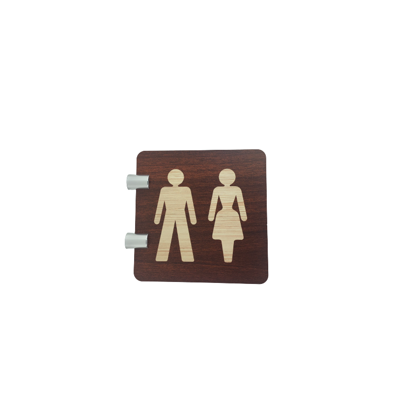 Cette plaque de signalétique est réalisée en PET 4mm transparent (recyclable), elle est imprimée recto verso d'un fond bois et d'un picto toilettes.