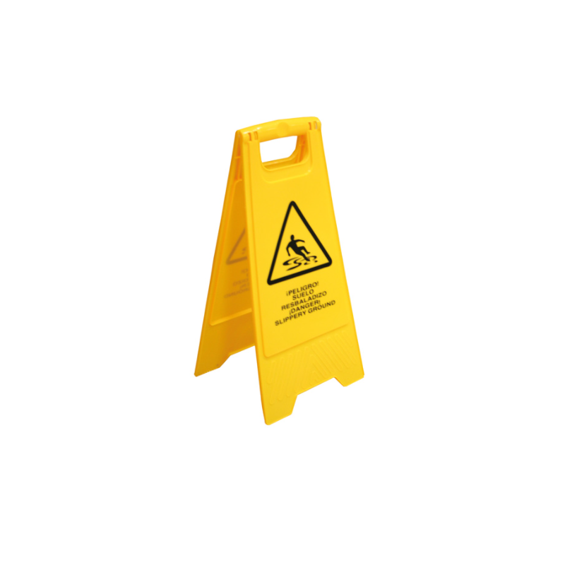 Chevalet Signalisation Sol Glissant. Il est fabriqué en polyuréthane avec finition jaune et sérigraphie noir. Il est parfait pour signaliser taches de nettoyages et évité accidents aux espaces publiques, commerces, bars, restaurants, bureaux… Hauteur total : 620mm. Base : 250x300mm