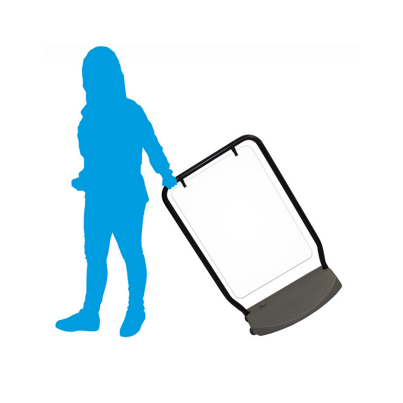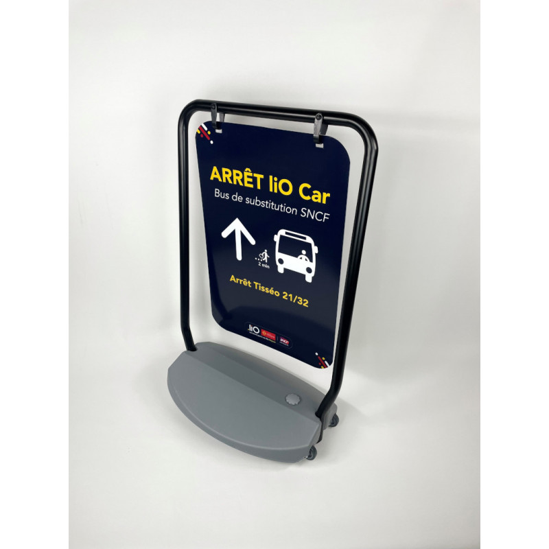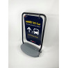 Ce chevalet stop trottoir est personnalisable sur les 2 faces par contrecollage d'un vinyl adhésif avec lamination de protection. Grâce à sa base rechargeable d'une capacité de 10 litres, elle résiste aux intempéries.