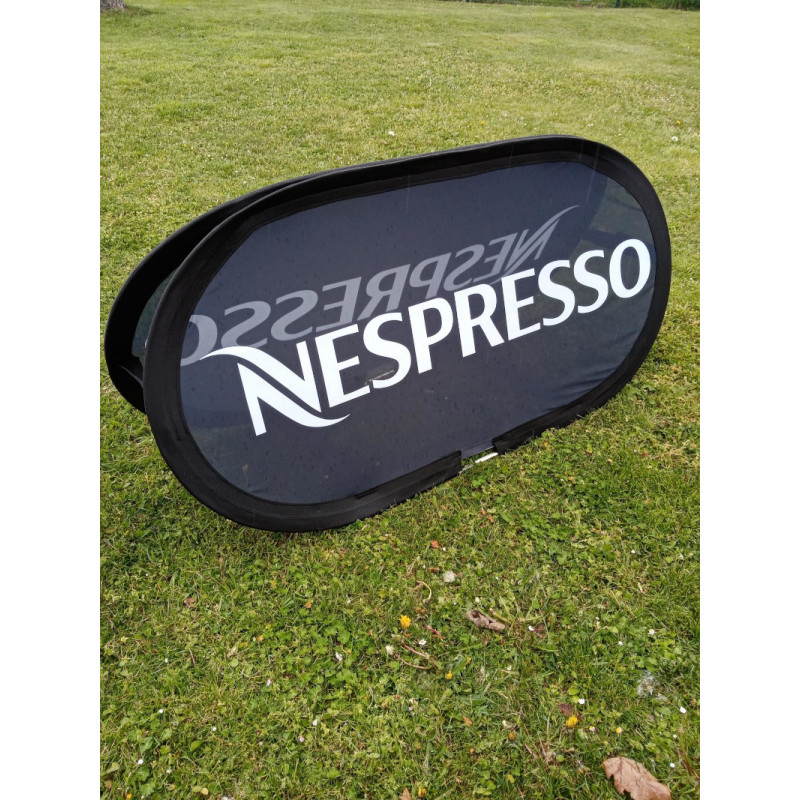 Chevalet publicitaire arrondi qui se déploie en quelques secondes pour être utilisé en intérieur ou fixé en extérieur avec les sardines fournies. Imprimé sur les deux faces, vous pouvez l’utiliser aussi bien en intérieur qu'en extérieur en particulier lors des manifestations sportives ou évènementielles.