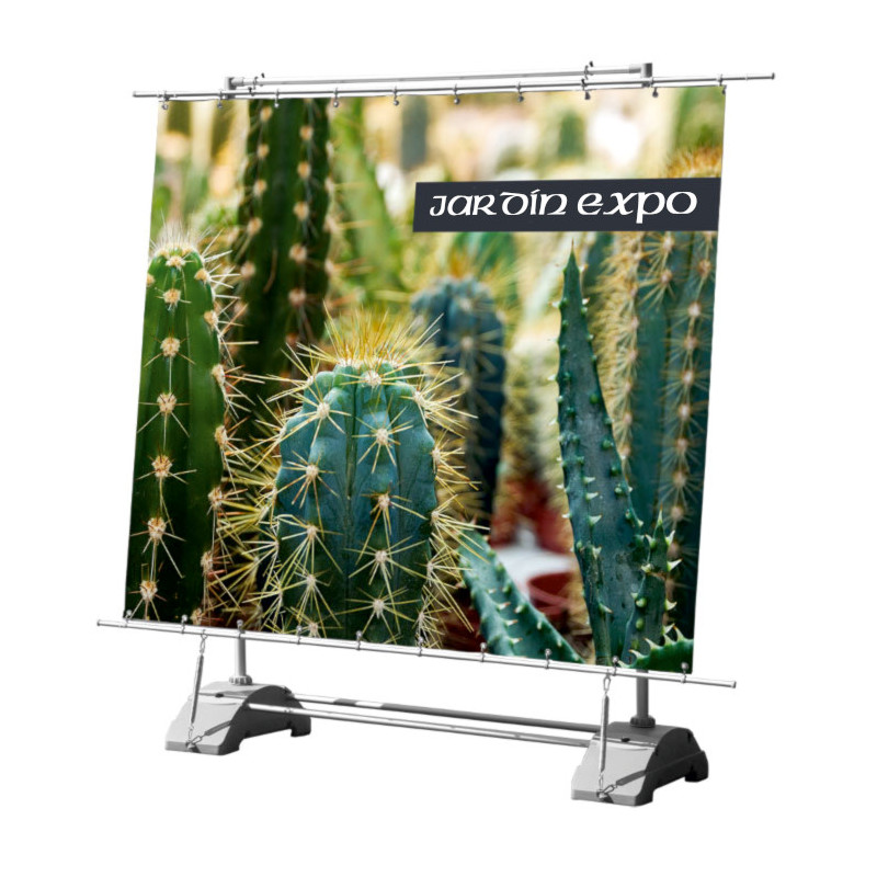 Cadre visuel Totem, pour maximiser l'impact de votre affichage. Lesté par deux embases réservoir remplies d'eau pour une stabilité totale.