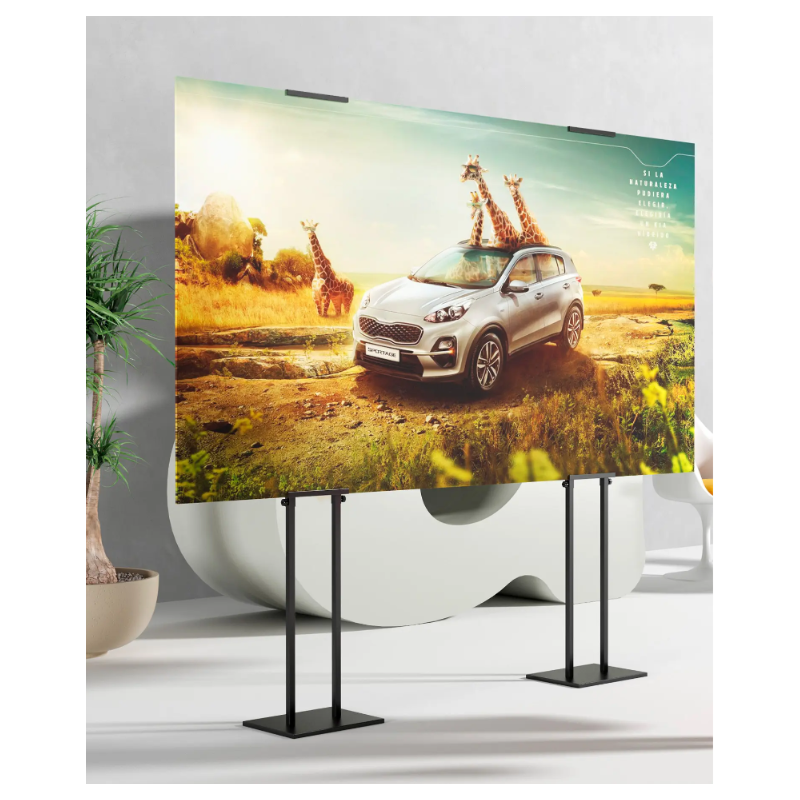 Avec ce support porte panneau, votre panneau publicitaire sera mis en valeur. Facilement transportable, il pourra être utilisé en interne de votre entreprise, ou utilisé pour des salons, évènements...