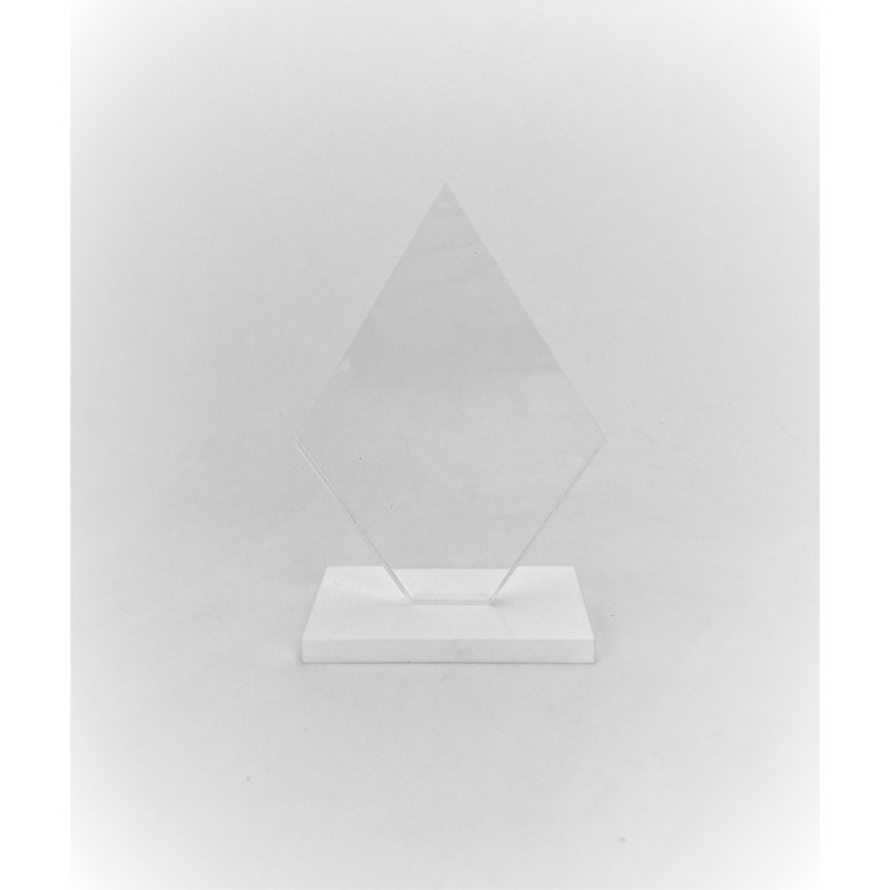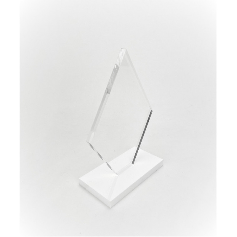Personnalisation du produit : Trophée Losange plexi transparent personnalisé socle blanc