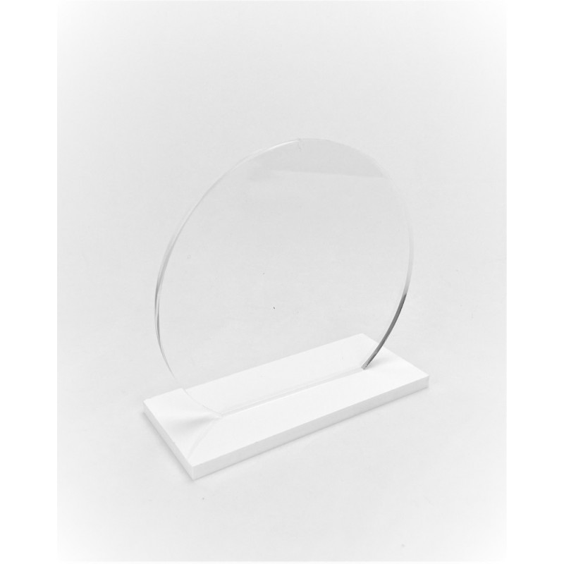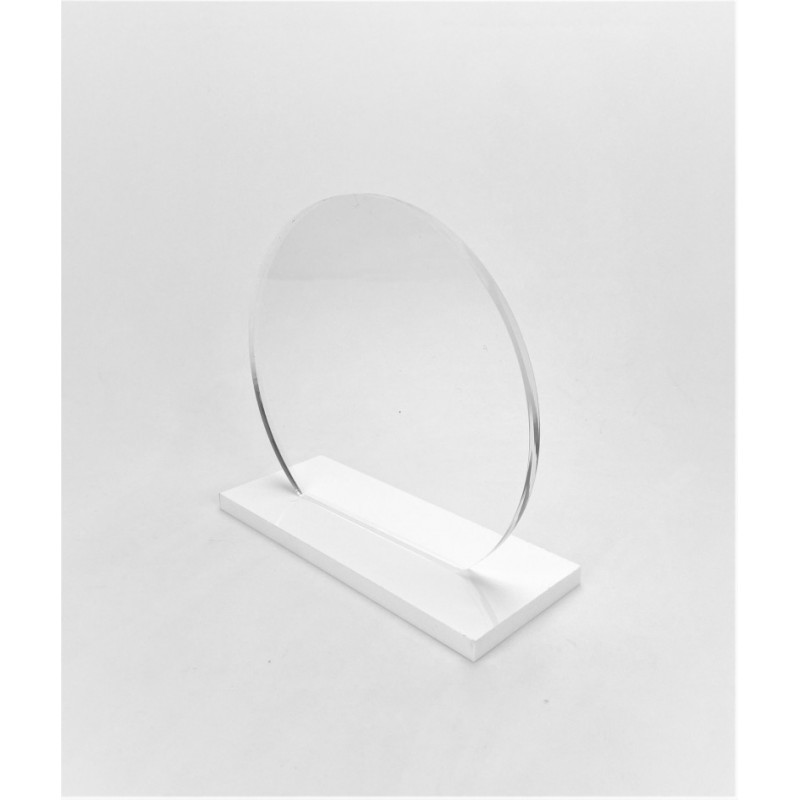 Personnalisation du produit : Trophée rond plexi transparent personnalisé socle blanc