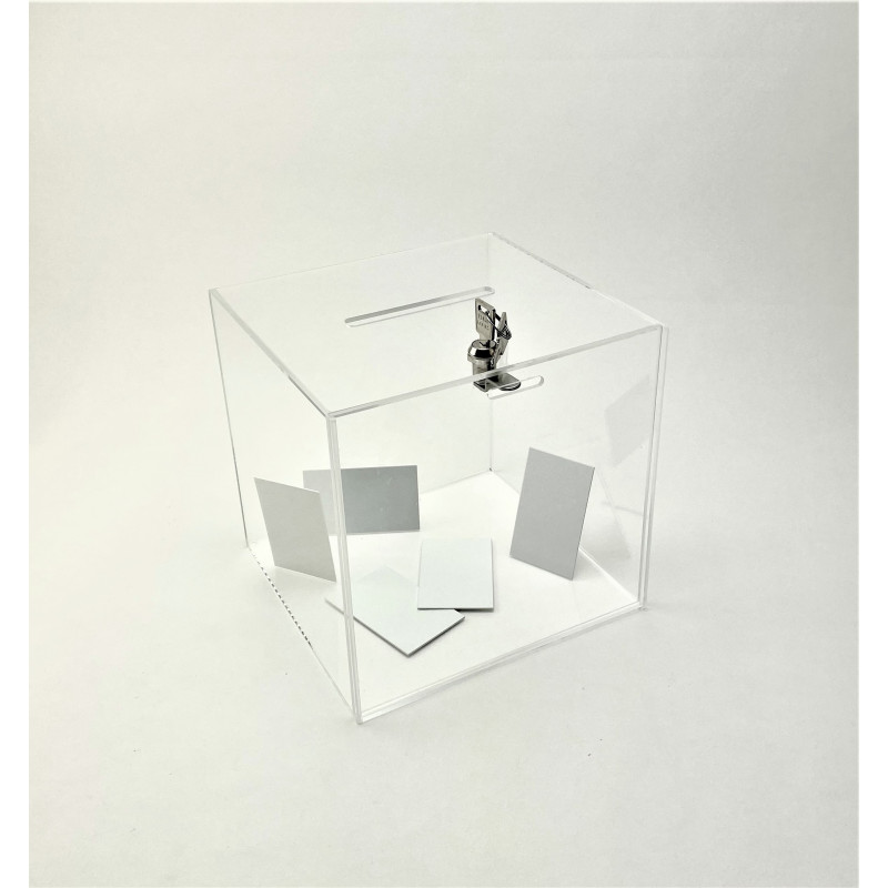 Cette urne est idéale pour vos animations commerciales, jeux concours, tombola, questionnaire clients, élections. Réalisée en plexi acrylique transparent, l'urne sécurisée s'intègre facilement avec vos PLV, sur vos comptoirs, dans vos rayons ou dans vos linéaires. Ces urnes peuvent recevoir des PLV et des personnalisations selon vos souhaits ainsi que des portes bulletins si besoin.