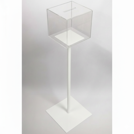 Cette urne transparente avec pied peut être utilisée directement posée au sol réalisée en plexi. Elle est idéale pour vos animations commerciales, jeux concours, tombola, questionnaire clients, élections.