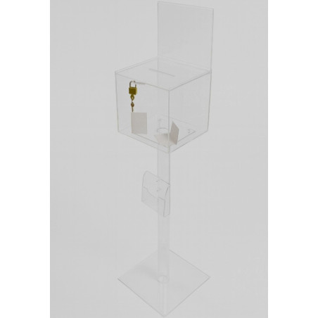 Cette urne est idéale pour vos animations commerciales, jeux concours, tombola, questionnaire clients, élections. Réalisée en Plexi transparent, elle s'intègre facilement avec vos PLV, près de vos comptoirs, dans vos rayons ou dans vos linéaires. Ces urnes avec porte affiche peuvent recevoir des PLV ou ILV et des personnalisations selon vos souhaits.