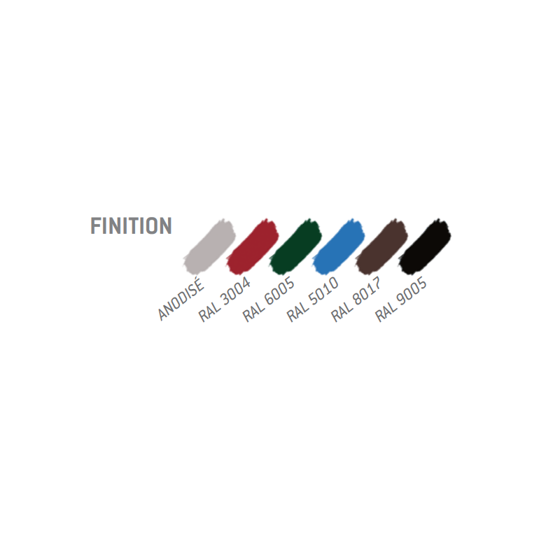 2 finitions possible en anodisé par défaut, ou en finition laquage (5 couleurs disponibles standard)