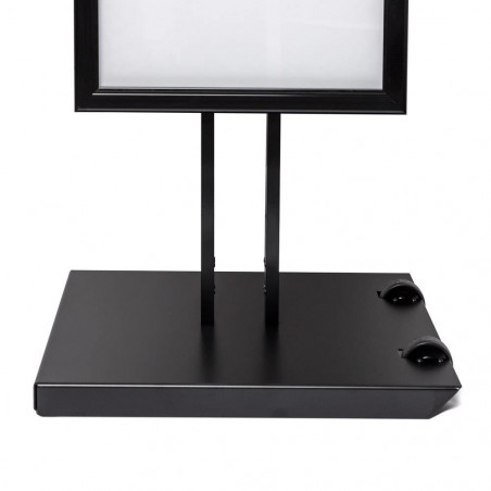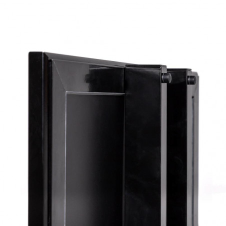 Vitrine porte menu autoportante de couleur noire souvent utilisée dans la restauration, l'hôtellerie. Ouverture par porte battante, elle dispose d'une fermeture à clés.